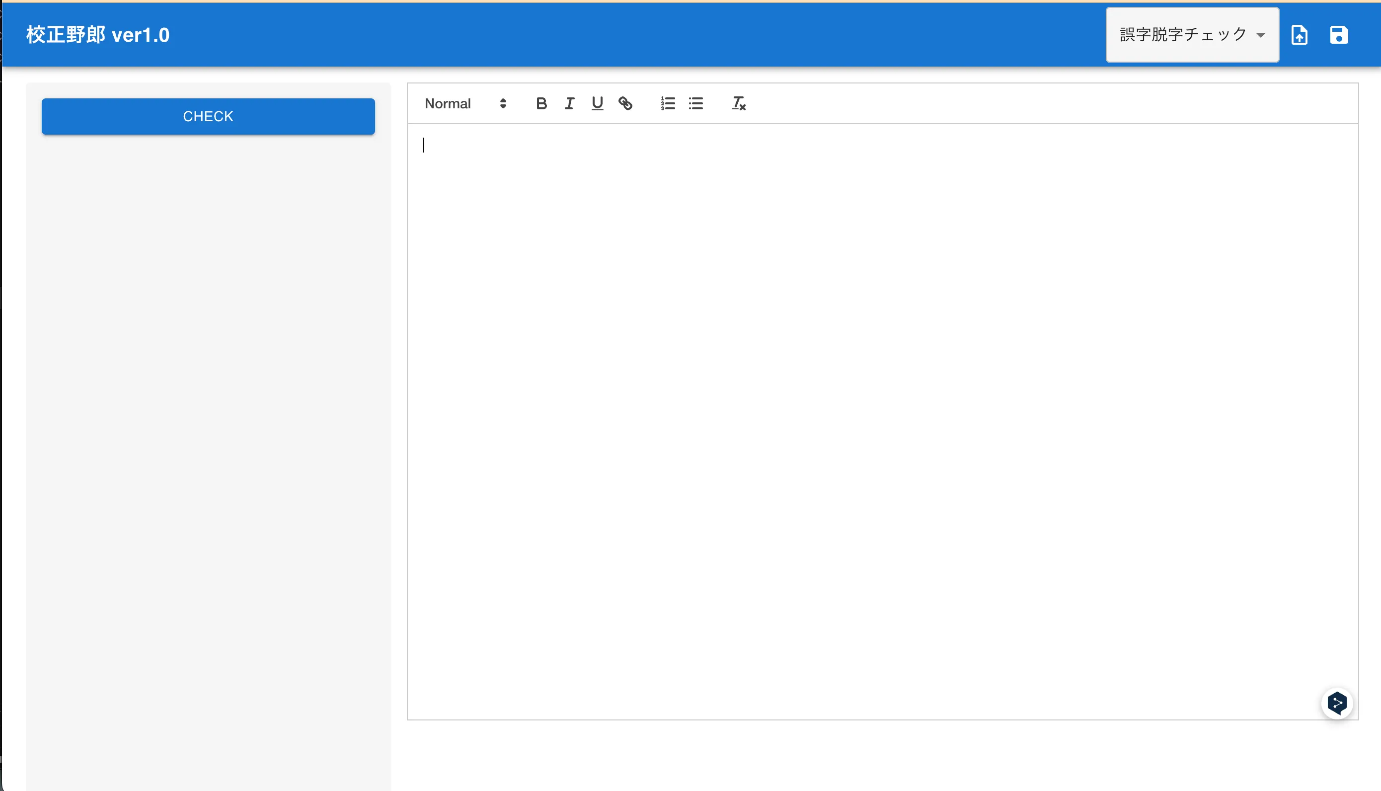 校正野郎 ver 1.0 をリリースしました。 クラウド上でtxtから文字列を読み出し、AI誤字脱字チェックや、他の様々なロジック校正機能を使うことができます。 ぜひお試しください。